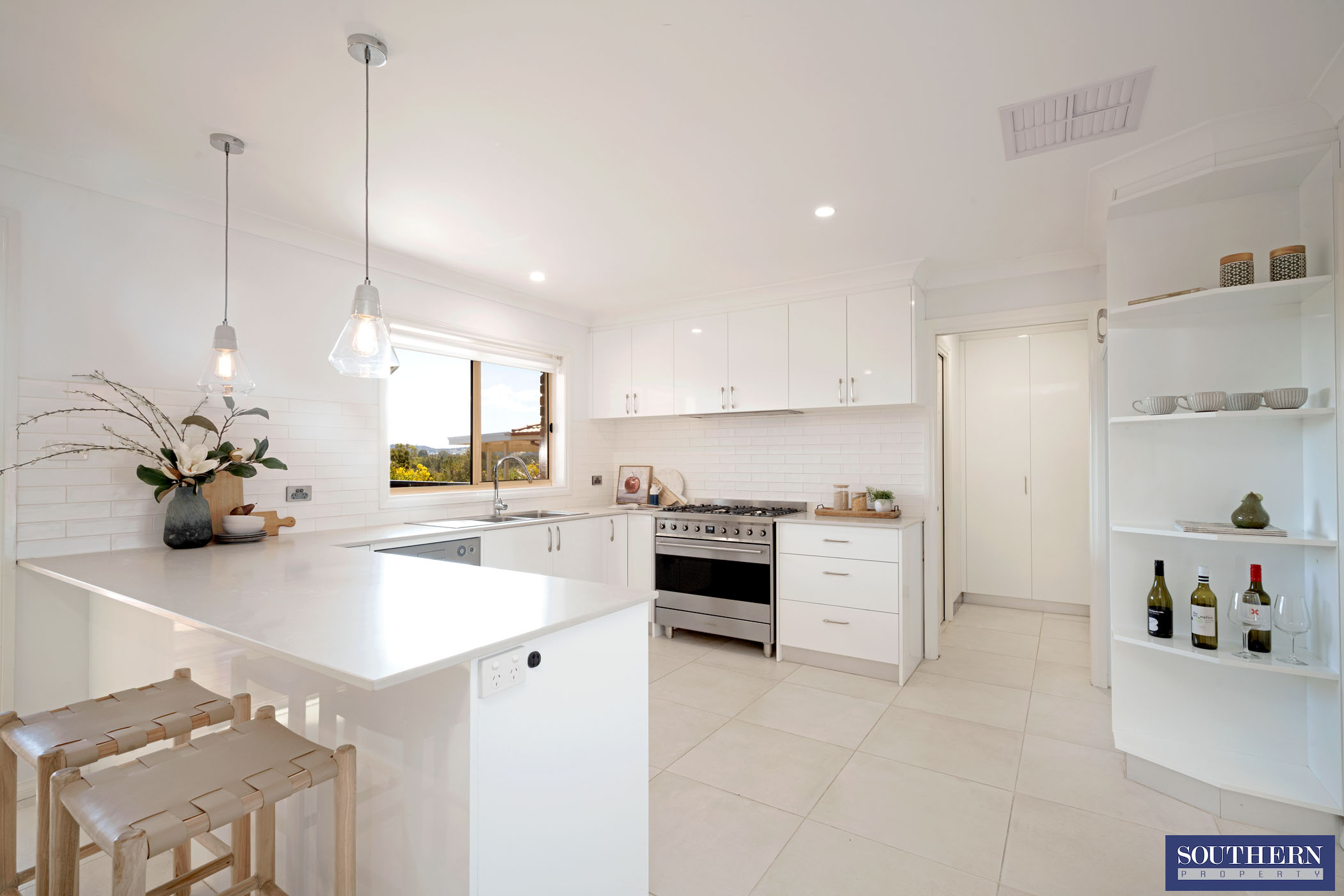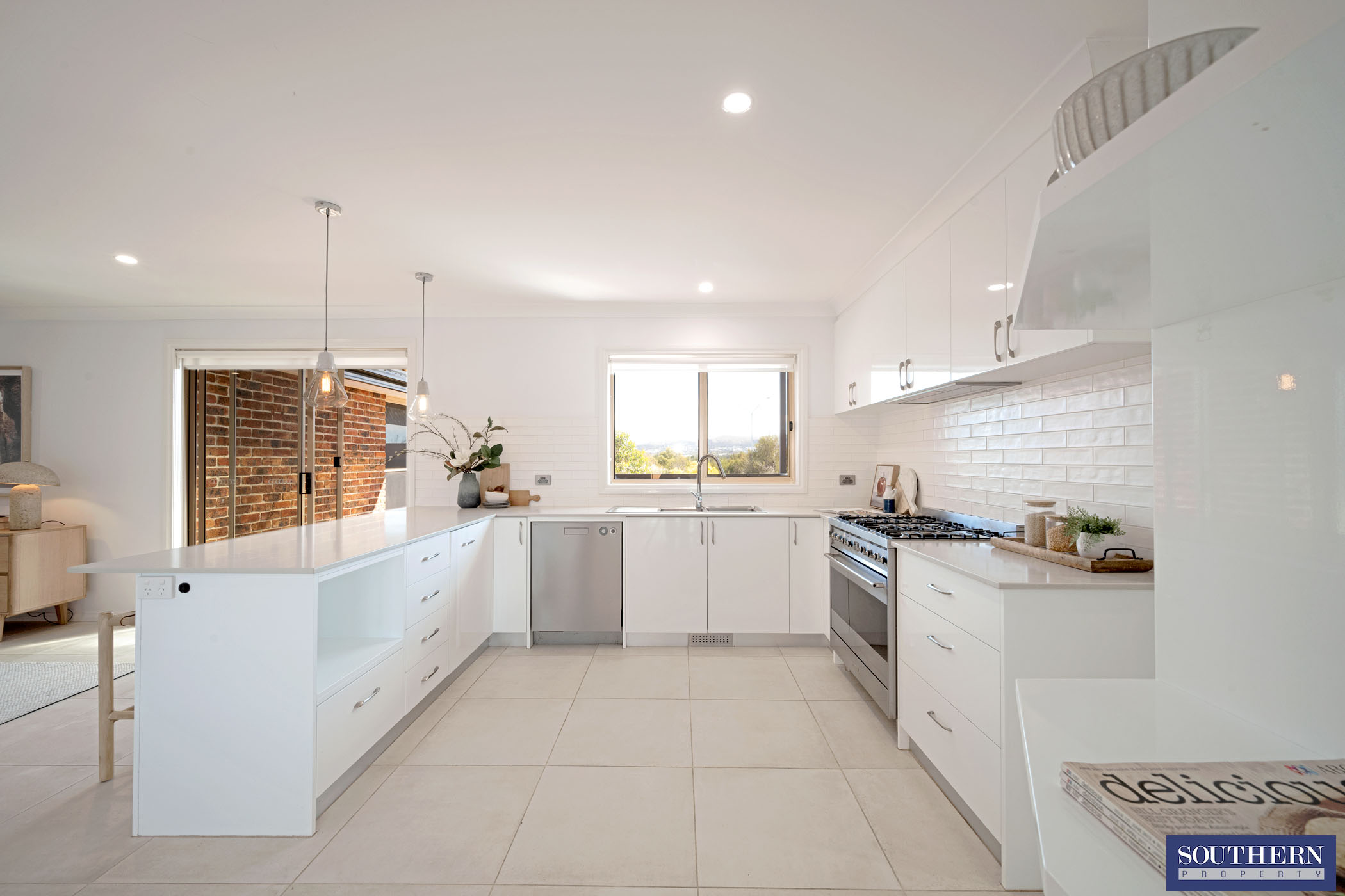 - Spacious kitchen with dishwasher, 900mm stainless steel cooking appliances, stone bench tops and walk-in pantry